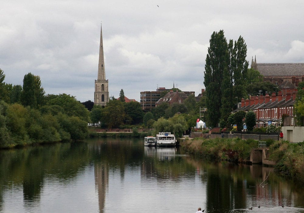 The walk starts from the St Andrews Garden of Remembrance on Deansway in the centre of Worcester. We start by walking down to the river from St Andrews tower. At the riverside we turn right and walk up to Worcester Bridge. At the bridge we stay on the south side and cross the river. On the far side a path leads south along the west bank of the river and this is the path we take. The walk follows this path for the best part of 1km until just after Diglis Fish Pass, where we come to Diglis Bridge. Here we cross the river and start back northward along the east bank of the river. We follow the path along the river bank crossing the small foot bridge across Diglis Dock. About two thirds of the way back up the east bank path we leave the river path at the Baker Boathouse. Following Severn Street we head towards the front of the cathedral. On the right we pass GoodRoots cafe which is a good place to stop for coffee if there is space. Following Severn St we continue to Edgar Tower where we then progress along the College Precincts which leads to the front of the Cathedral. From there we continue around the Cathedral following College Yard to the north west corner of the Cathedral. A path then takes us on a twisty route back down to the river - passing through an old river gateway. It is worth stopping here to look at the record of flood heights through the years. We then turn right and continue along the river bank and back to Copenhagen Street Car Park and the start of our walk.